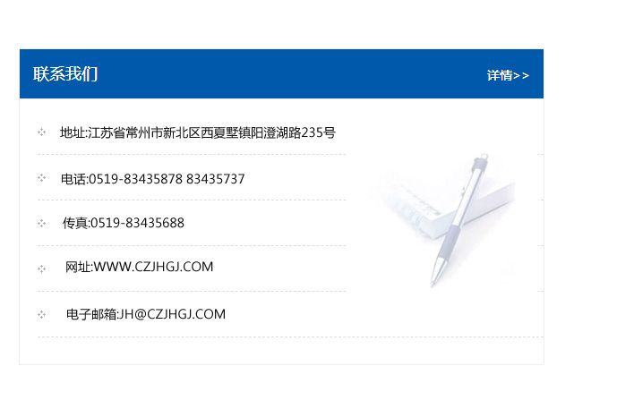 傳真:0519-83435688    郵編:213135    網址:WWW.czjhgj_com.zltdwl.com    電子郵箱:JH@czjhgj_com.zltdwl.com